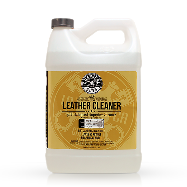 - Pair Chemical Guys Leather Cleaner with the Horsehair Leather Cleaning Brush.